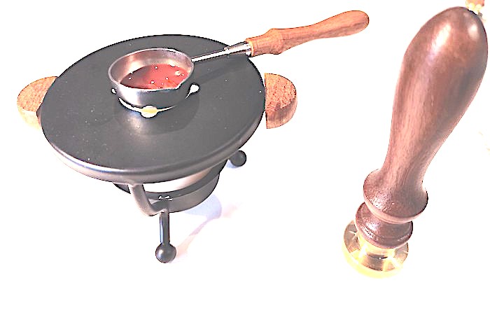 For this method, you must use wax in bead form, 2-4 small beads is usually enough for 1 seal. The wax is placed in a melting spoon and set on top of a small candle using a special spoon holder. Once the wax is melted, it is poured onto the envelope and stamped with the seal. In our testing, it is a good idea to go with a spoon holder that has good distance between the flame and the spoon so you have more control over temperature. If the wax is bubbling, it is too hot.