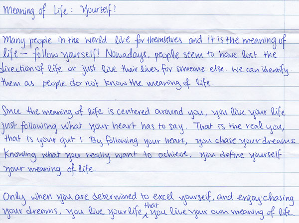 Many people in the world live for themselves and it is the meaning of life - Follow yourself! Nowadays, people seem to have lost the direction of life or just their lives for someone else. We can identify them as people do not know the meaning of life.