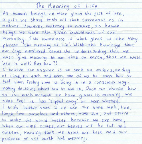 As human beings we were given the gift of life, A gift we share with all that surrounds us in nature. However, contrary to nature, as human beings we were also given awareness of our mortality. This awareness is what gives us the very phrase 'the meaning of life'. With the knowledge that our days numbered comes the understanding that we must give meaning to our time on earth, that we must use it well. But how?