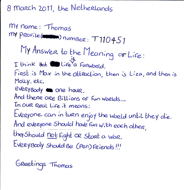Everyone can in turn enjoy the world until they die. And everyone should have fun with each other, they should not fight or start a war. Everybody should be (Pen)Friends!!!