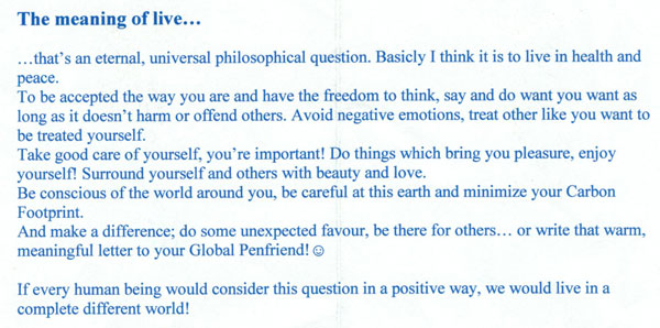And make a difference; do some unexpected favor, be there for others....or write that warm, meaningful letter to your Global Penfriend!