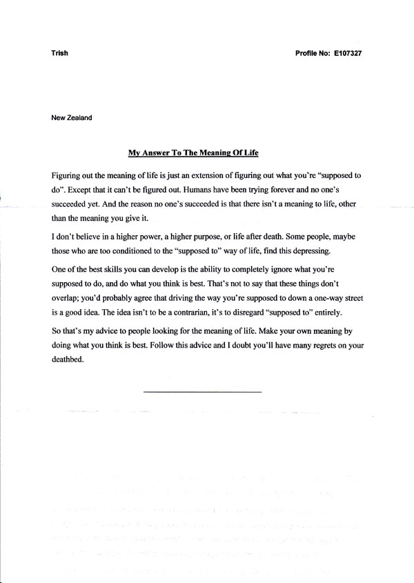 So that's my advice to people looking for the meaning of life. Make your own meaning by doing what you think is best. Follow this advice and I doubt you'll have many regrets on your deathbed.