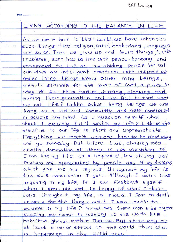 As we were born to this world, we have inherited such things like religion, race, motherland, languages and so on. Then we grow up and learn things, tackle problems, learn how to live with peace, harmony and encouraged to live as law abiding people. We call ourselves as intelligent creatures with respect to other living beings. Every other living beings, animals struggle for the sake of food, a place to stay. We see them eating, drinking, sleeping and making their generation and die. But is that what we call life? unlike other living beings we are living as a civilised community and self controlled in actions and mind. As I question myself what should I exactly fulfil within my life? I think the timeline in our life is short and unpredictable. Everything we inherit, acheive, have to be kept away and go someday but before that, chasing into wealth, domination of others is not everything. If I can live my life as a respected, law abiding and praised and appreciated by people and if my decisions which give me no regrets throughout my life is the sole consideration I gain. Although I won