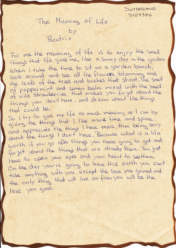 For me the meaning of life is to enjoy the small things that life gives me, like a sunny day in the garden.